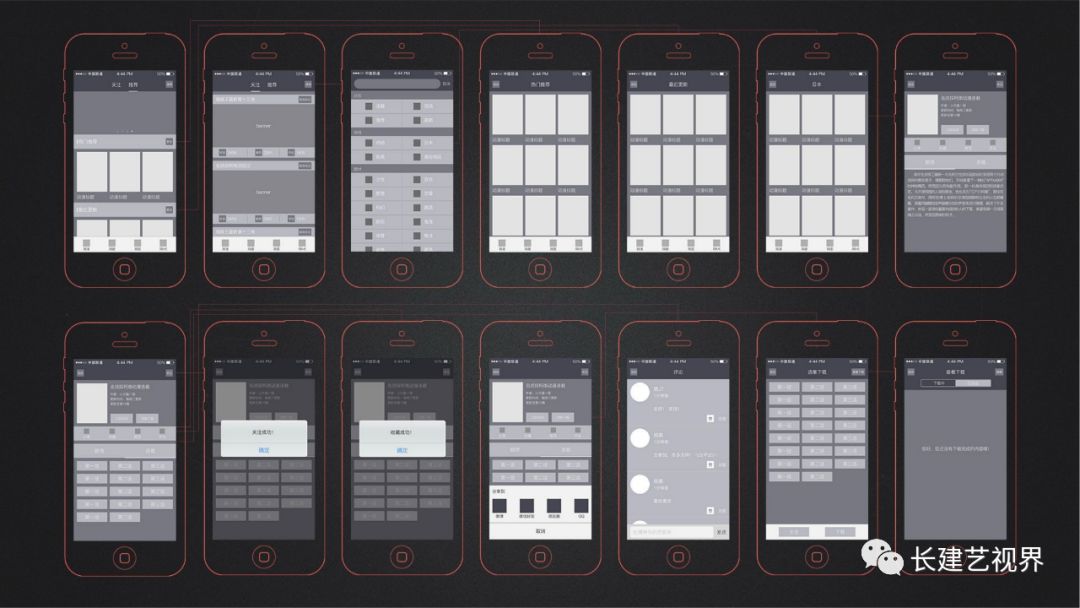 即产出数页的高精度视觉APP设计稿,即大家熟知的首页、设置、好友列表、个人资料、关注、启动页、引导页等等。