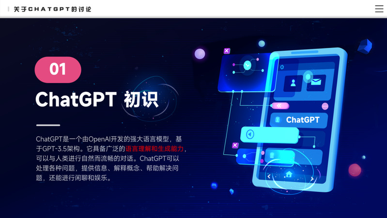 刘东洋主要探讨ChatGPT在教育领域的应用潜力,分享实践经验,并讨论潜在的挑战与未来发展方向。她首先通过实际演示,介绍ChatGPT的基本概念、技术原理和工作流程,让大家了解ChatGPT如何与人类进行自然语言交互。