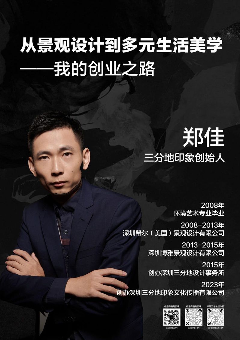 郑佳以“美酒加咖啡”有了瑞幸和茅台联名举例,强调了艺术来源于生活,景观设计创业者可以通过创新设计和可持续发展理念,改变人们对城市空间的认知。随后,他以其丰富的创业经历和深刻的行业洞察,详细讲述了深圳市三分地印象文化传播有限公司成立至今的辉煌历程。毕业后,郑佳去到了深圳希尔(美国)有限公司、深圳博雅景观设计公司工作,2015年创办深圳三分地设计事务所,开启了他自己的创业之路。到2023年,成功创办深圳三分地印象文化传播有限公司。创业的成功,是郑佳努力拼搏的见证,也是对郑佳不懈奋斗的至高肯定,是他未来更加辉煌的起点,更是他迈向更加璀璨未来的崭新起点。他在创业过程中的坚持与努力,为同学们树立了一个积极向上、努力奋进的优秀榜样。