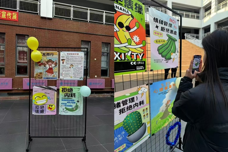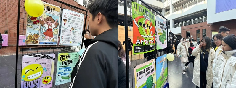 在本次心理健康宣传展中,老师和同学们积极参加。同学们纷纷驻足于宣传海报前认真观看、讨论案例表达自己的观点。