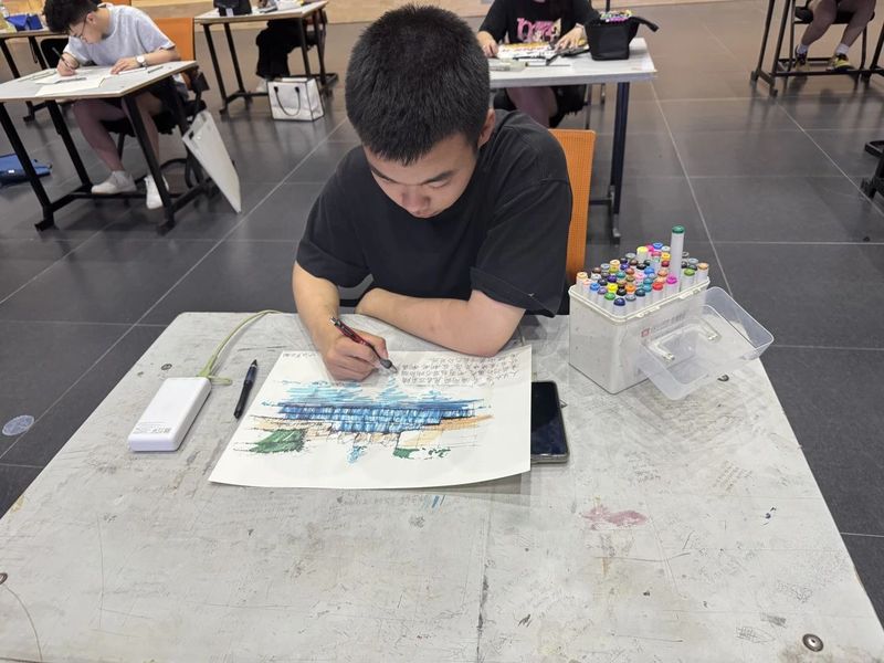 23级,24级的同学们充分发挥专业所长,将对毕业生的不舍与祝福融入到每一笔创作中。有人绘制了承载无数回忆的校园建筑,图书馆的静谧、教学楼的庄重、操场的活力跃然纸上,勾起毕业生们对校园生活的美好回忆;有人描绘了毕业生们在艺术道路上拼搏奋斗的身影,那些为设计方案熬夜的夜晚、为创作作品反复修改的坚持,都化作画面中动人的细节;还有人用抽象的笔触勾勒出对未来的憧憬,象征着毕业生们即将开启的崭新征程,如同一幅绚丽多彩的画卷徐徐展开。